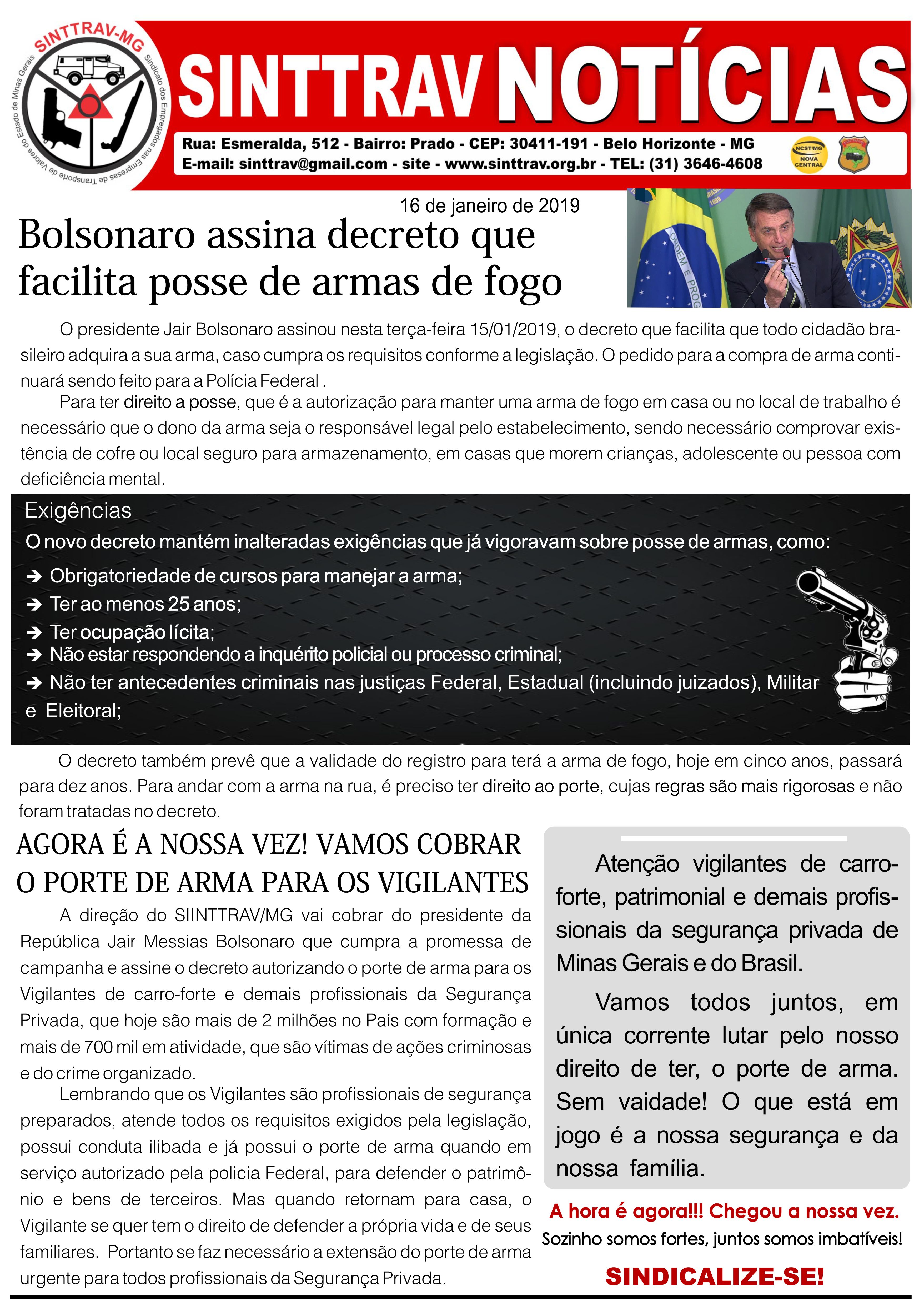 23/01/2019 - Bolsonaro assina decreto que facilita posse de armas de fogo. Saiba mais...