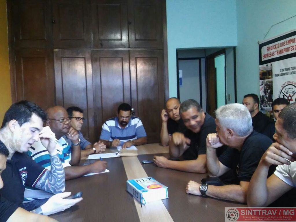 Os diretores do Sinttrav-MG estão reunidos para falar sobre a compensação dos feriados, clube CELP, plano de saúde e melhorias para os trabalhadores
