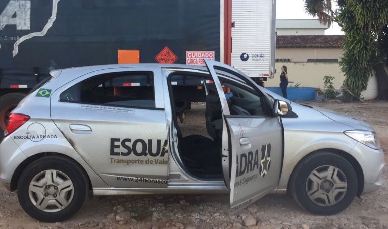 Dois vigilantes da transportadora de valores Esquadra, trocaram tiros com assaltantes em roubo de carga.