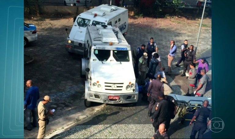 4 bandidos armados com fuzis e calibre 12, abordaram o carro-forte e anunciaram o assalto.