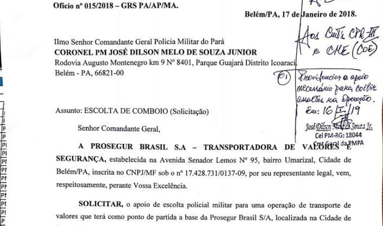 O gerente explica que a escolta se faz necessária, pois a empresa irá transportar uma soma alta de dinheiro