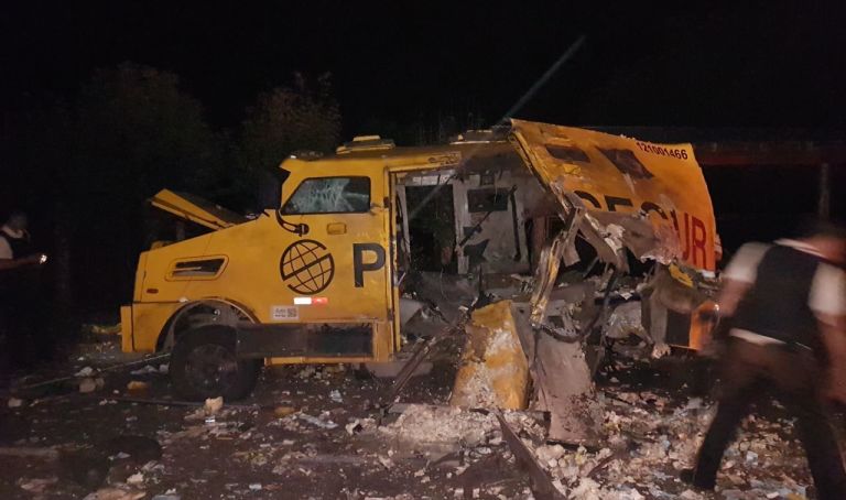Criminosos armados com metralhadora calibre 0.50. usaram veículos para fechar a passagem do carro-forte. Houve troca de tiro com os vigilantes.